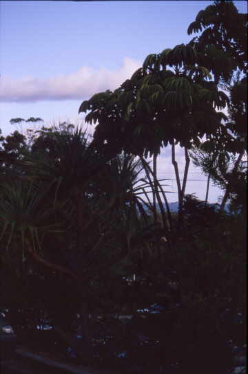 Es standen Baum-Schefflera rum. Diese besondere Art heißt Regenschirmbaum.