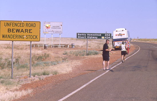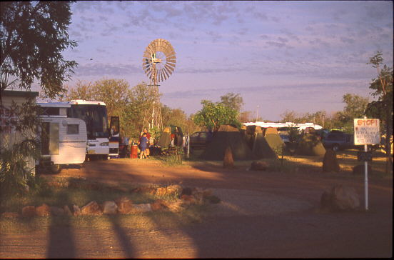 der einzigsten asphaltierten Straße quer durch den Kontinent.In Renner Springs, eine der Tankstellen mit angeschlossenem Rastplatz, die in Abständen zwischen 70 und 150 Kilometern an der Straße sind, übernachteten wir.