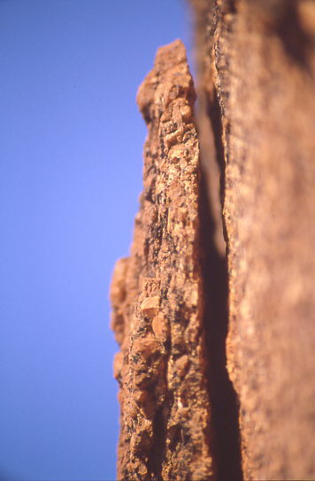 Neue Bruchflächen sind hellgrau, und verwittern dann rotbraun.