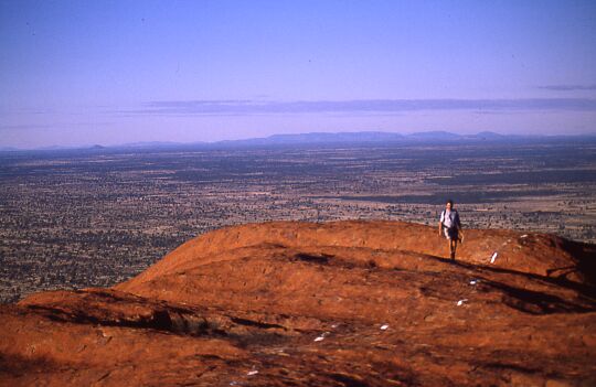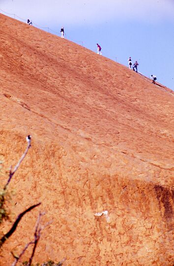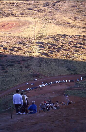 Von dort konnte man den Fels umrunden, oder ihn besteigen.Das Besteigen des Uluru wird von den Aborigines nicht gerne gesehen, da er selbst und viele Höhlen am Fuß Kultstätten sind. Etwa 10 Tage später war der Fels komplett für mehrere Tage für Touristen gesperrt, weil ein Häuptling gestorben war.
